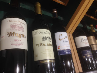 Una selección de vinos tintos españoles en un supermercado en Londres (entre 11£-25£).