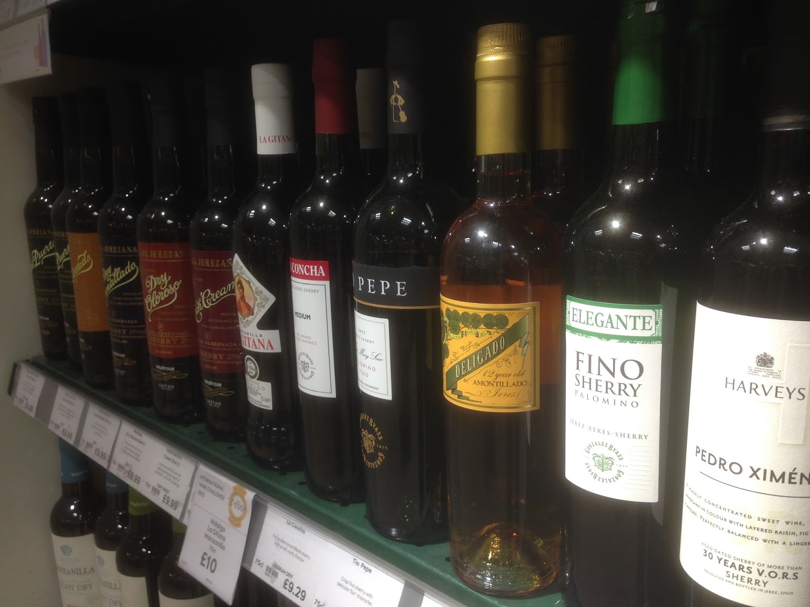 Una gran variedad de vinos fortificados de Jerez, disponible al público británico (de seco a dulce).